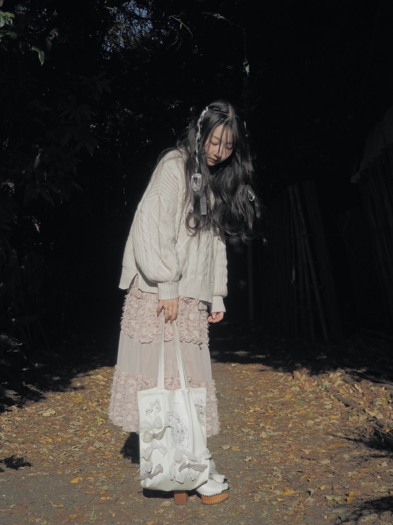 ・表面に付いているリボンはしっかりと縫い付けていますが、強く引っ張ったり、引っかかったりすると取れる可能性がありますので、ご注意下さい。