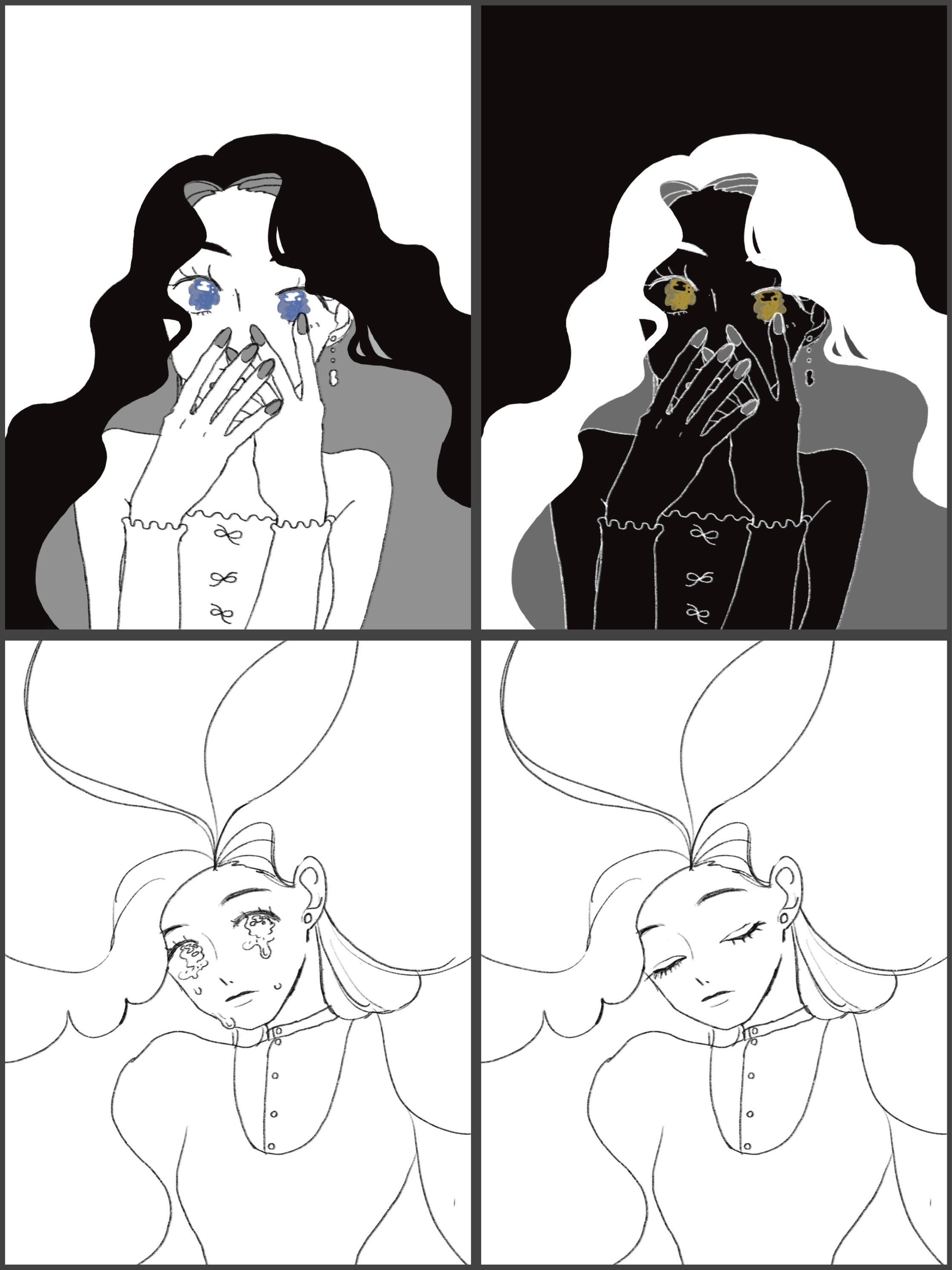 オリジナルイラストに一つ一つビーズ刺繍をし