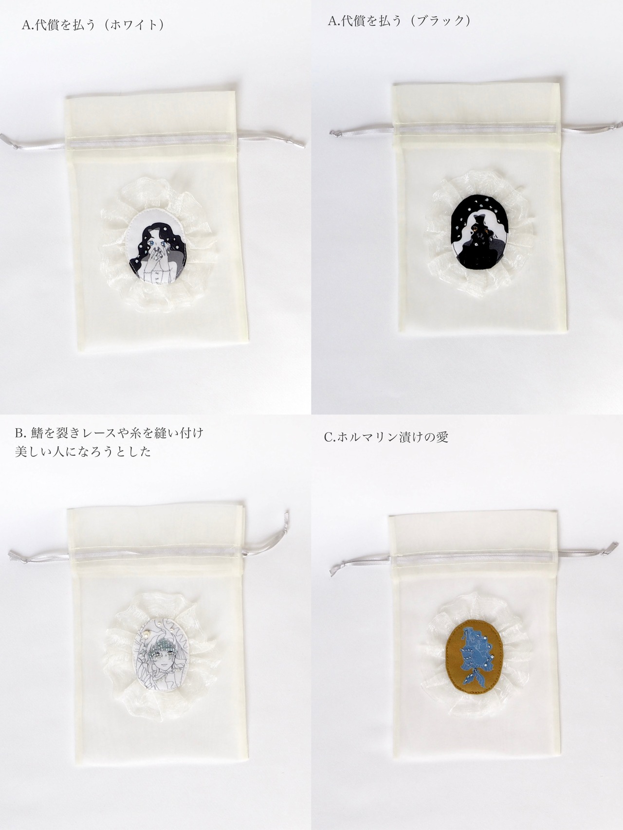 オリジナルイラストに一つ一つビーズ刺繍をし