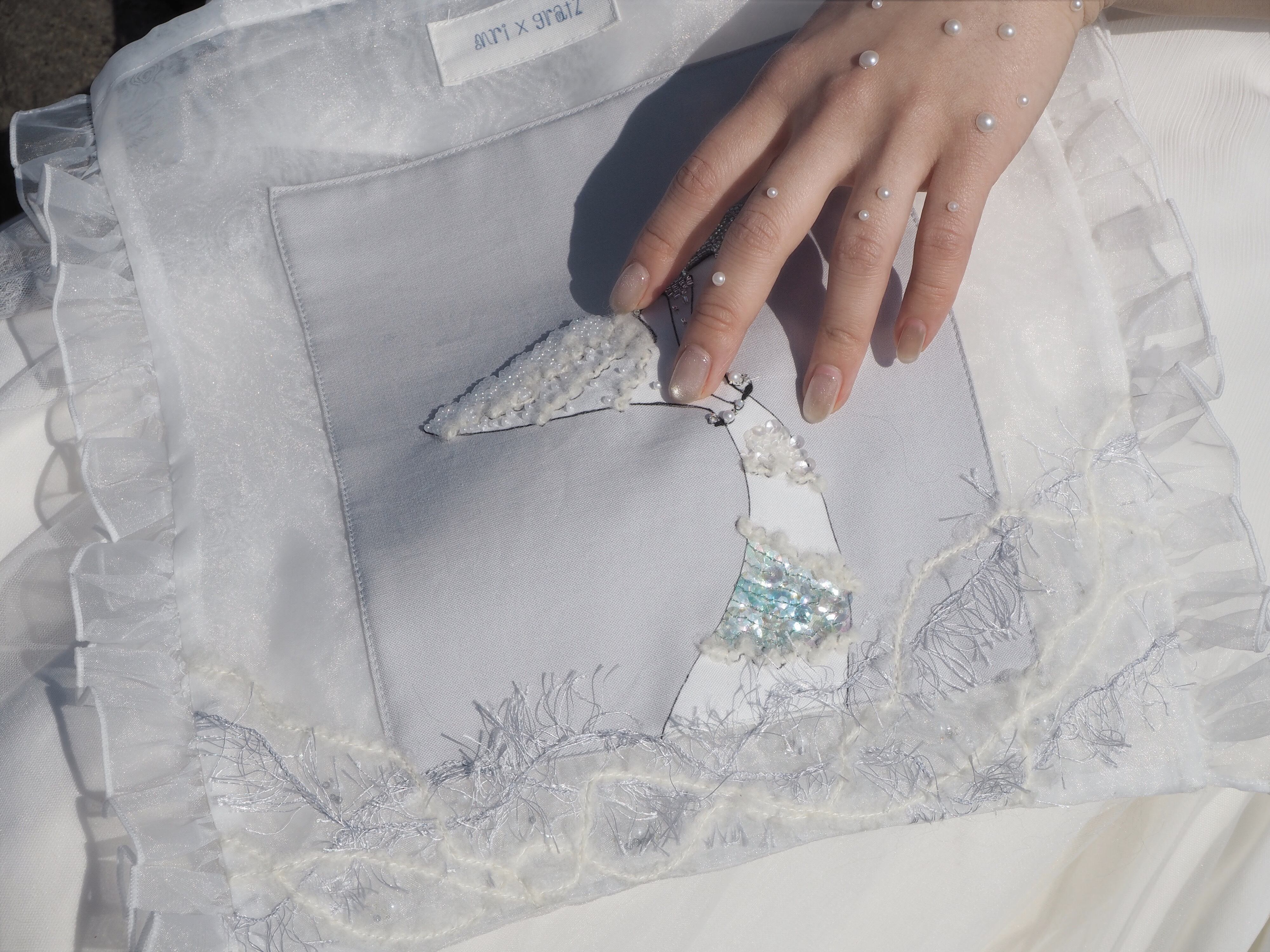 オリジナルイラストに一つ一つビーズ刺繍をし