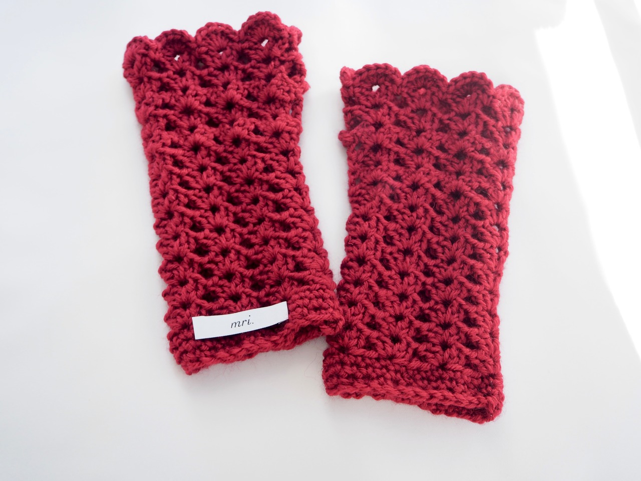 透かし編みが特徴のアームウォーマーです。
